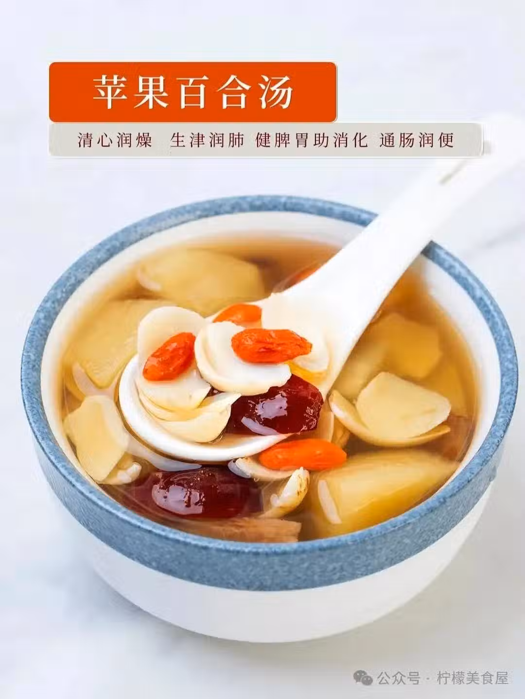 天氣越來越熱了,容易心煩易燥。咱們可以煮碗蘋果百合湯,清心潤燥、生津潤肺、健脾胃幫助消化,潤腸通便。 大人小孩都可以喝,酸酸甜甜的,特別好喝,煮過的蘋果肉、紅棗肉也可以吃哦。 食材: 百合干15g、蘋果1個、紅棗3顆、枸杞5克 做法: 1、百合干提前泡3小時,蘋果去皮去核切小塊,紅棗去核切小塊。 2、除枸杞,所有食材放到鍋里,加適量清水,煮20分鐘。 3、最後加入枸杞煮2分鐘關火即可。