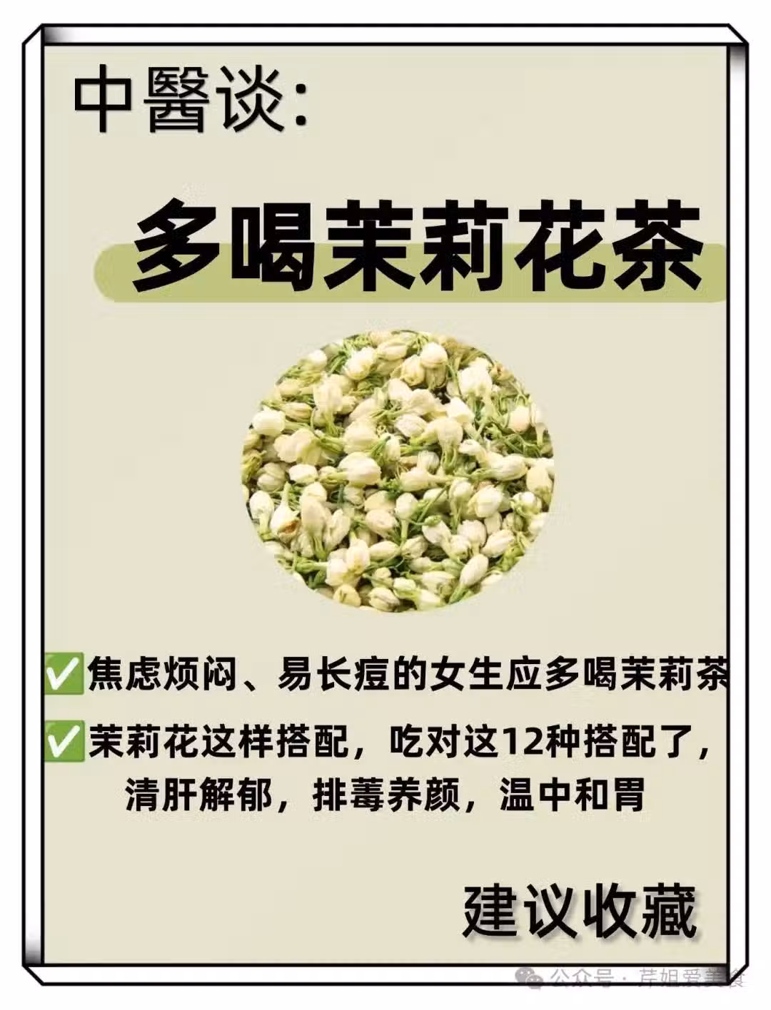 ⭐️茉莉花,性溫,味辛,微甘,歸脾、胃、肝經。它擁有疏肝解郁、舒緩情緒、溫中和胃、消腫止痛、排毒養顏的諸多好處。