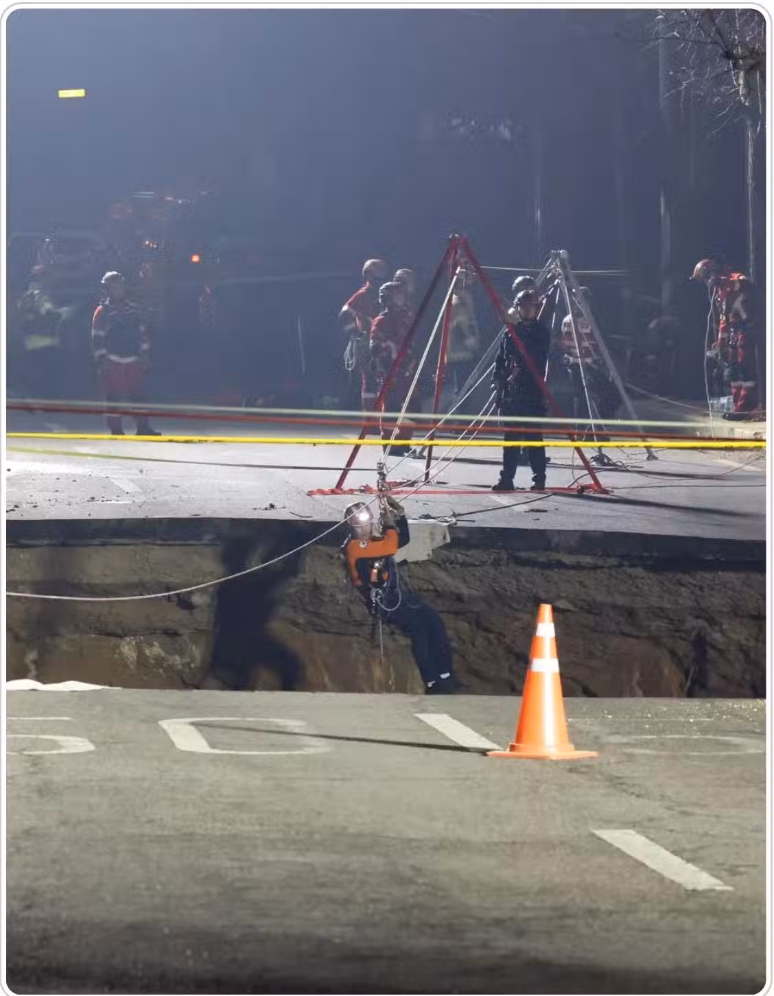 路面現巨大天坑 摩哆騎士掉下去 17小時後尋獲遺體|附音頻
