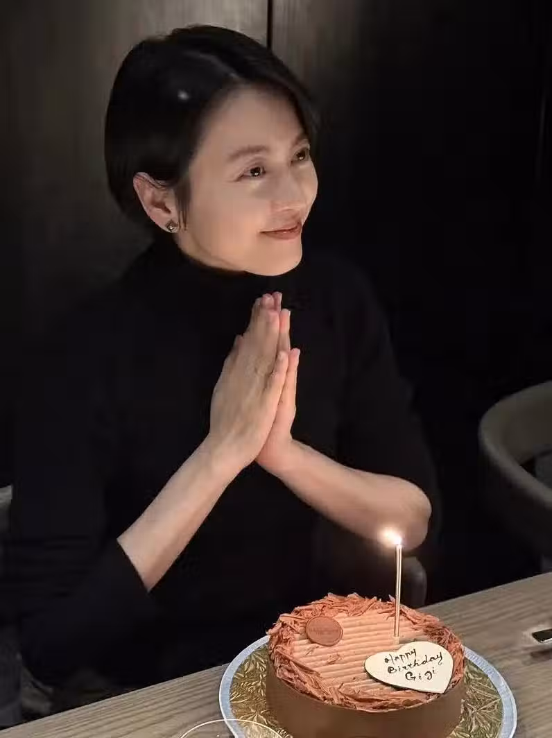 梁詠琪過49歲生日,和古天樂一起吃飯,皮膚超級好,身上沒有老態