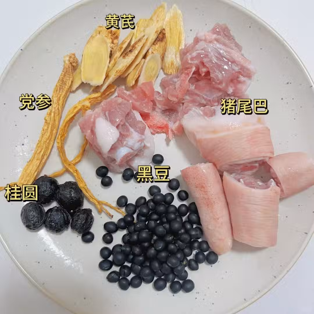將準備好的食材洗凈後,豬尾巴可先行焯水,以去除多餘油脂,使湯品更加清爽不油膩。隨後,將所有食材一同加入燉盅中,慢燉約1小時,待食材精華充分融入湯中,最後根據個人口味調味即可享用。