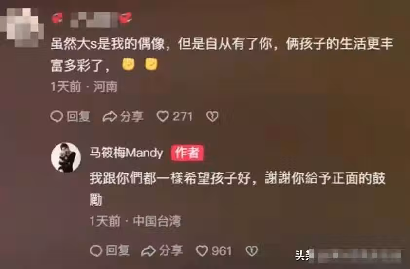 馬筱梅也給予了回復,她也希望兩個孩子好。