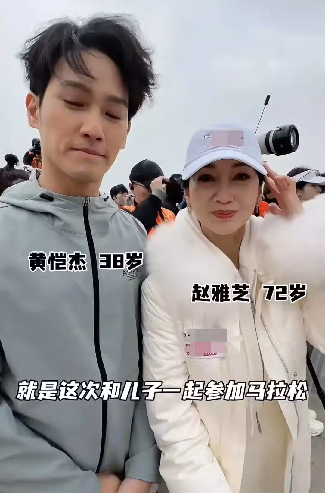 72歲趙雅芝在山東,和兒子跑馬拉松,黃愷傑顏值高,母子長得好像