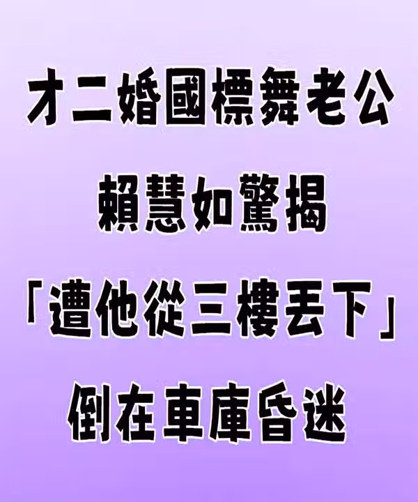 才二婚國標舞老公!賴慧如揭「遭他從3樓丟下」倒在車庫