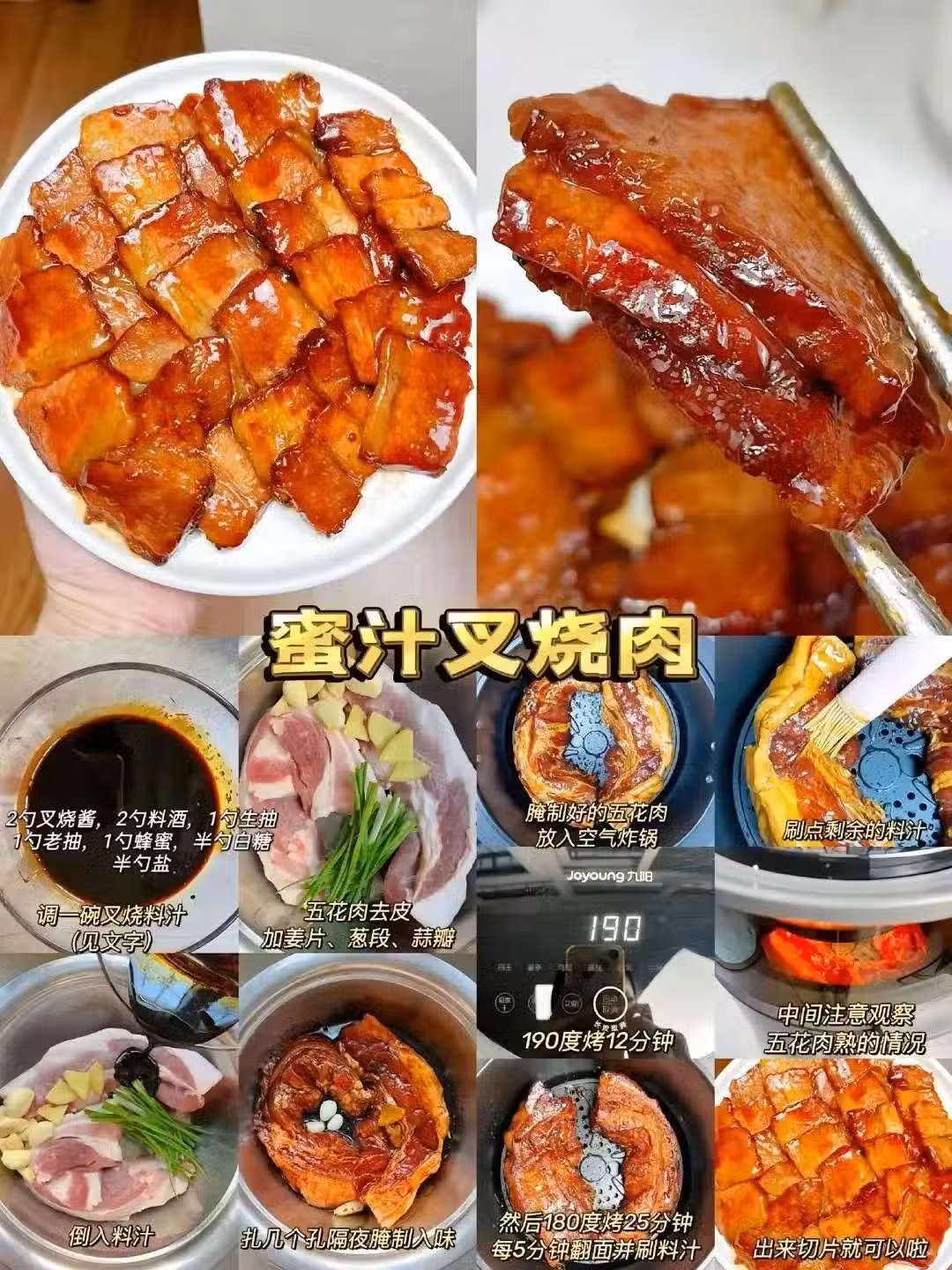 廣式茶樓外帶平替。梅花肉用叉燒醬按摩後烤箱190度12分鐘,切片時流出的肉汁能拌三碗飯!