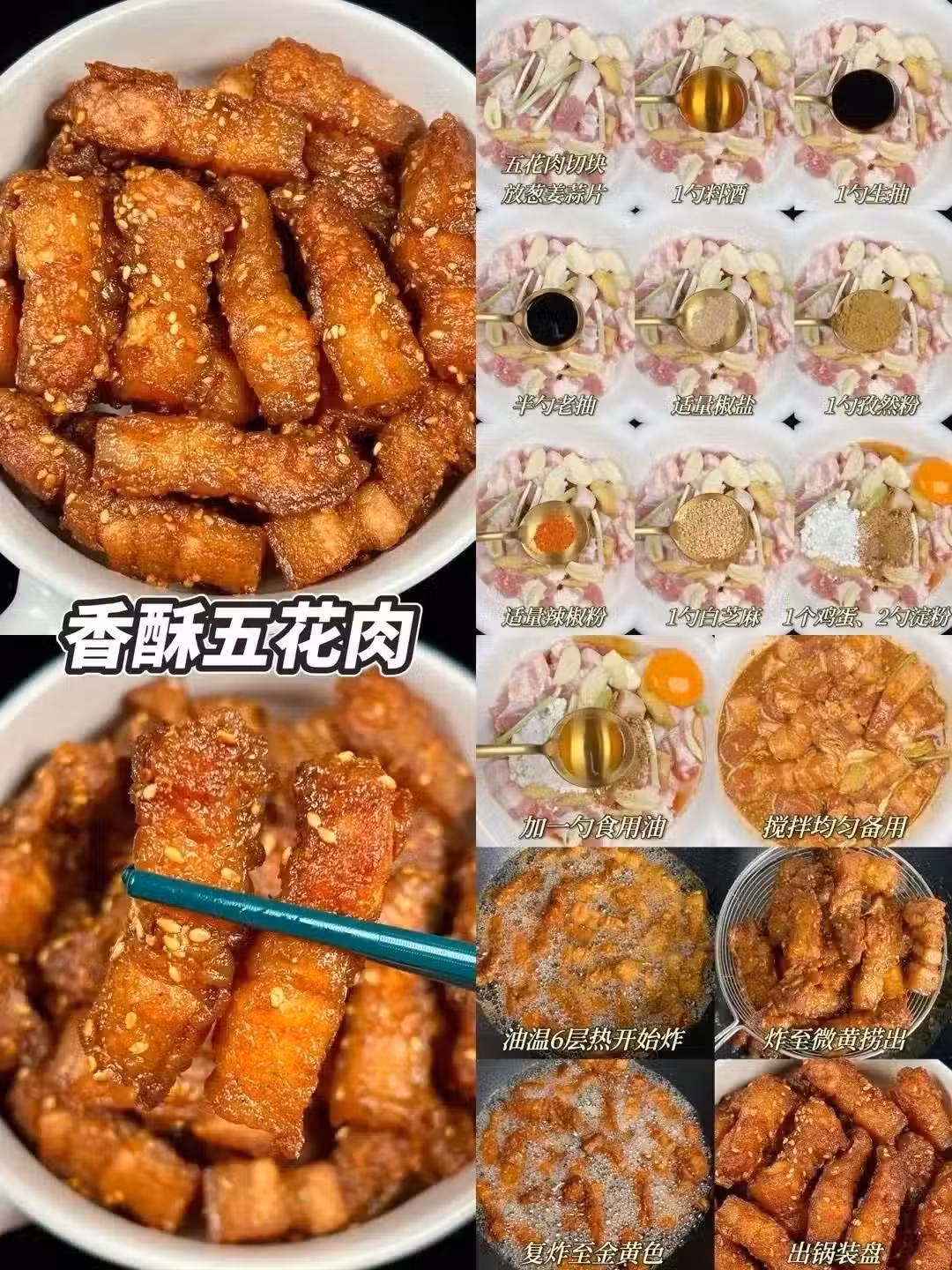 給空氣炸鍋磕頭的封神之作。五花肉薄片料酒生抽腌10分鐘,丟進油鍋撒燒烤料,15分鐘後收穫一鍋自帶BGM的咔滋脆響。