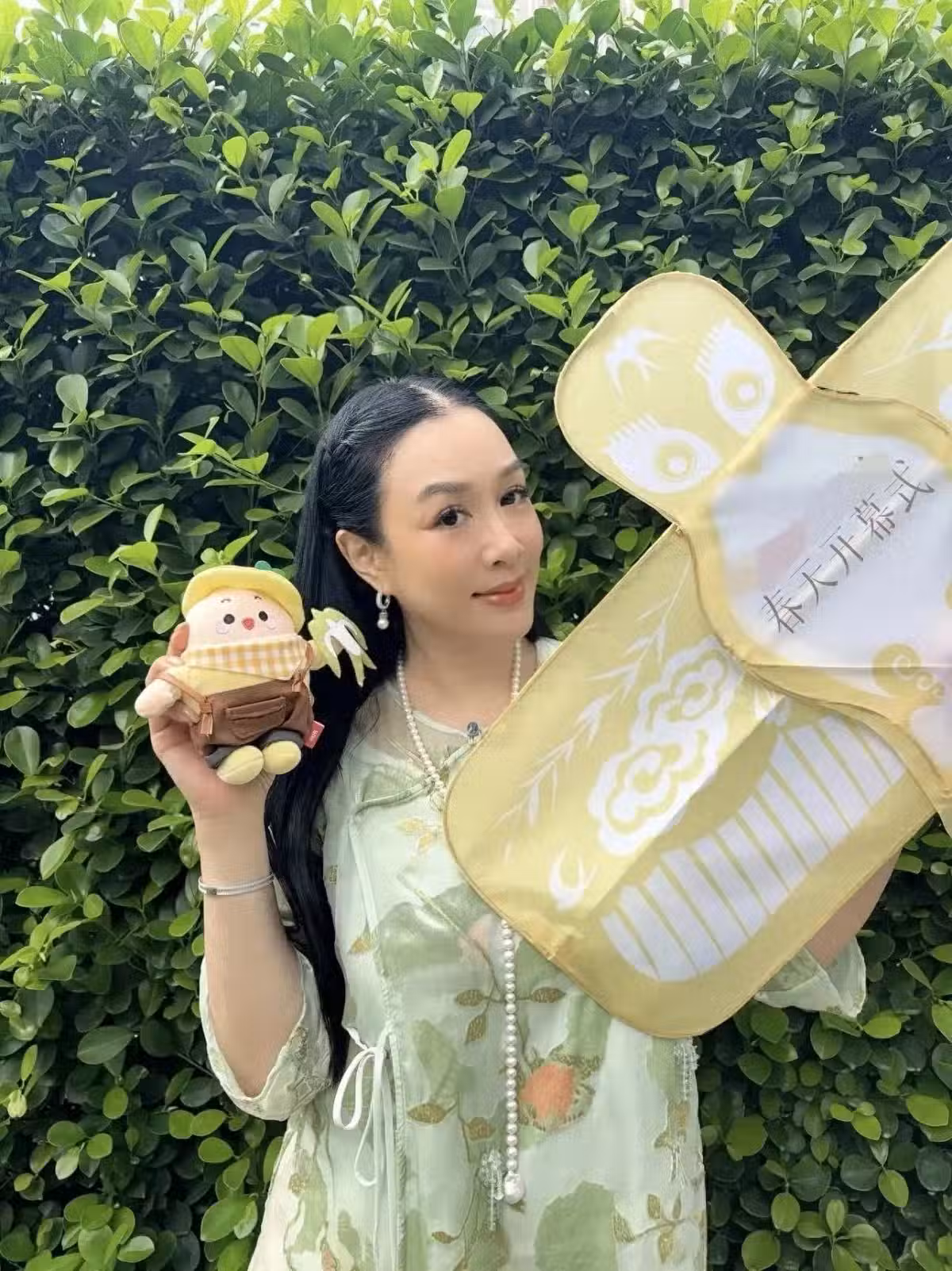 54歲鍾麗緹在廣州,一個人逛太古匯,打扮像貴婦,身上戴好多珍珠