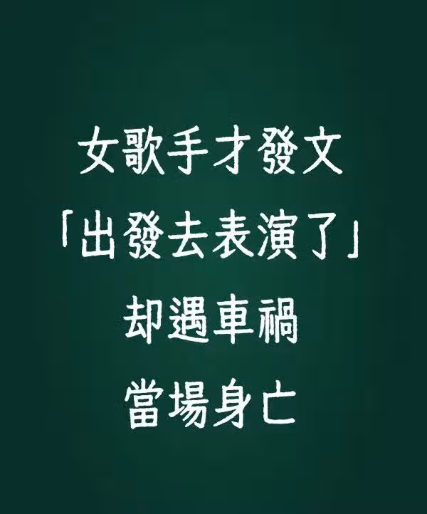 女歌手才發文「出發去表演了」 卻遇車禍 當場身亡!