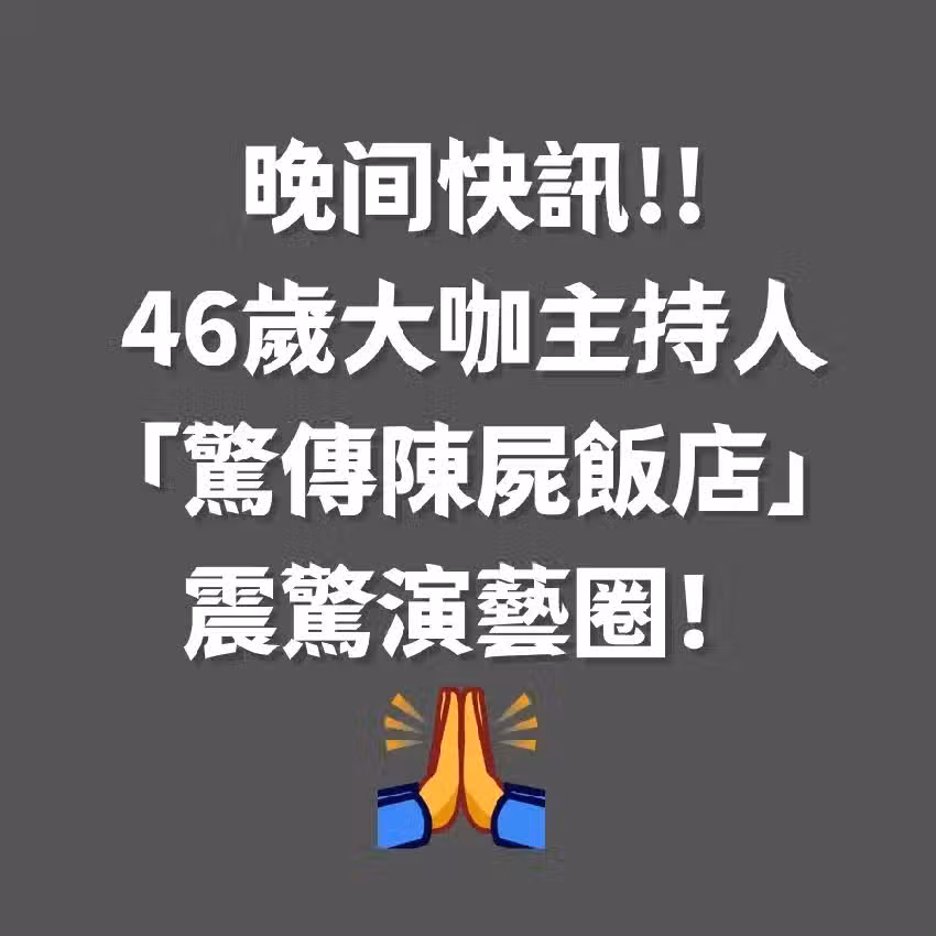 晚間快訊/46歲大咖主持人「驚傳陳屍飯店」震驚演藝圈!