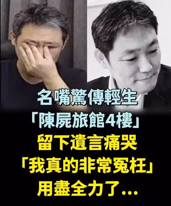台名嘴驚傳輕生「陳屍旅館3樓」 留下遺言痛哭「我真的非常冤枉」:用盡全力了...