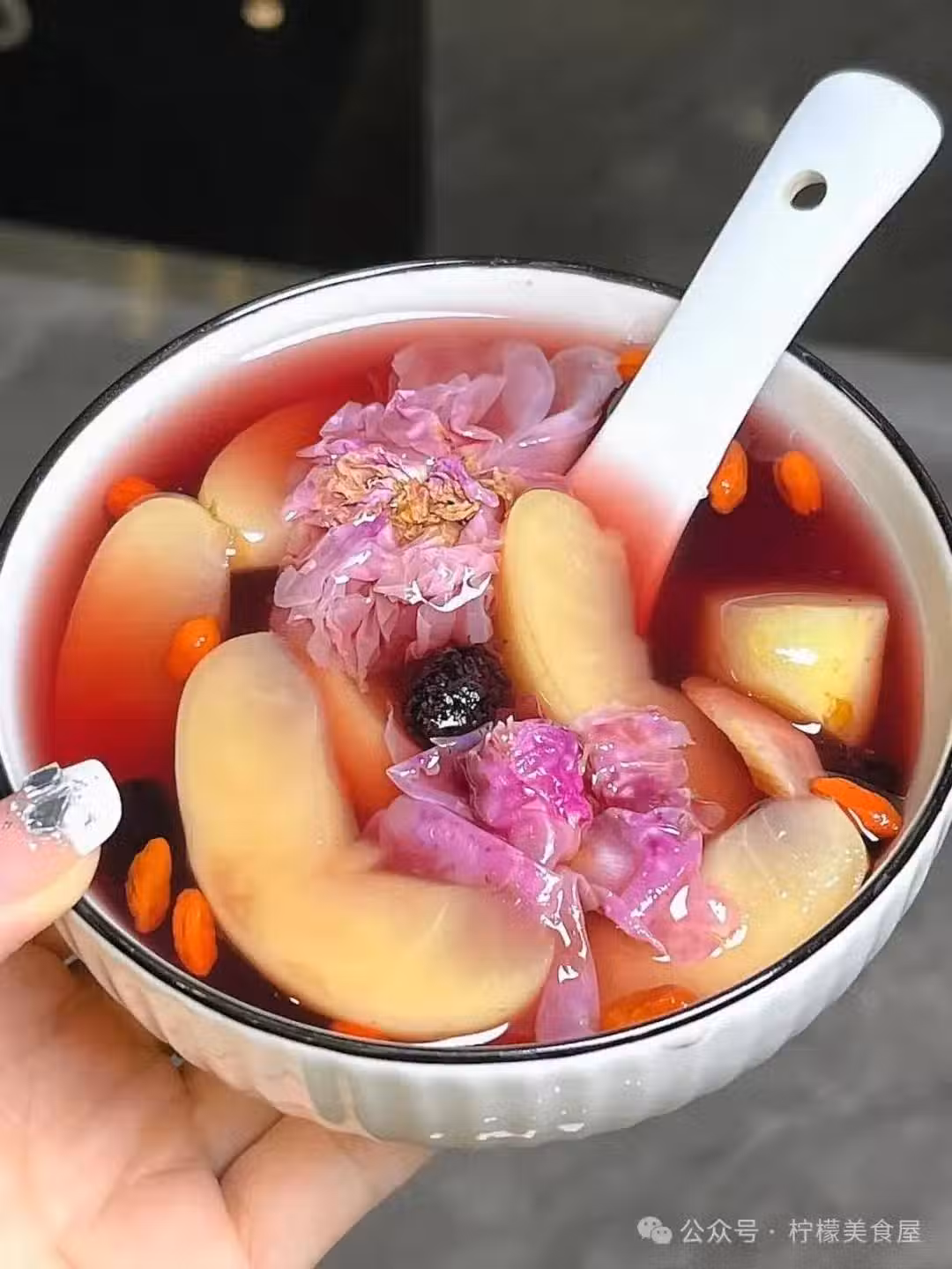 桑葚美容養顏、補血滋陰、延緩衰老。玫瑰疏肝解郁、美容養顏。黃芪補氣益氣。枸杞日常生活中常見食材,多用於煮水或者煲湯。 蘋果水很流行的養生水,搭配桑葚、玫瑰、黃芪等食材。太適合女孩子喝了。春天,別只知道喝奶茶飲料,試試這個蘋果桑葚水,補氣血、健脾胃、美容養顏。 食材: 蘋果半個、桑葚6顆、枸杞適量、玫瑰4朵、黃芪10g