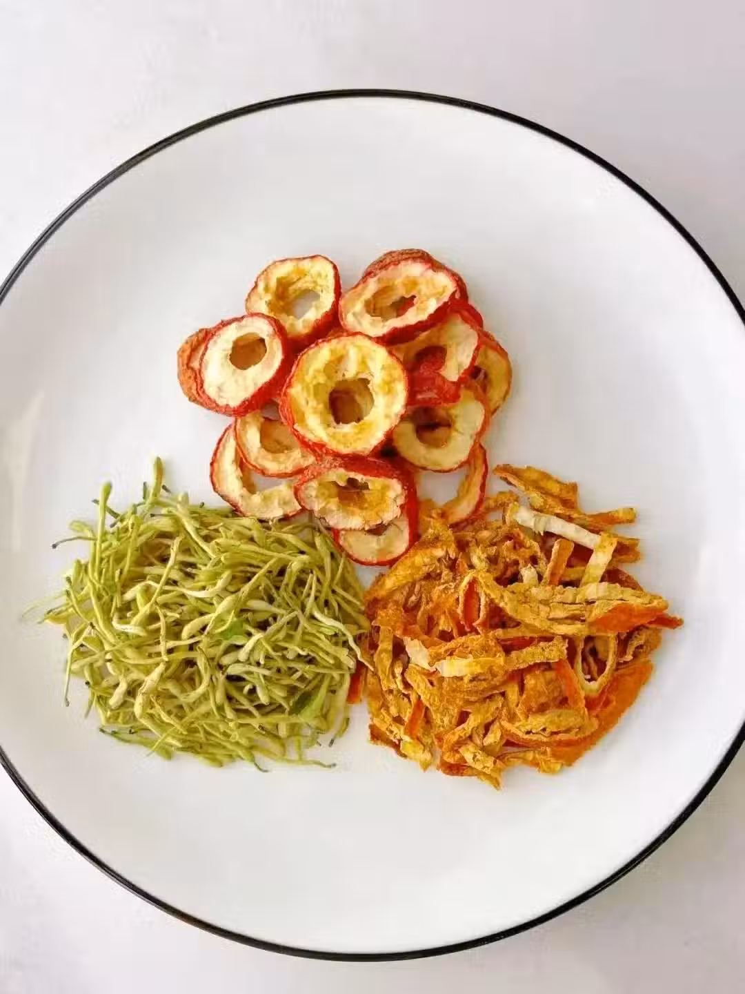 1️⃣陳皮泡軟颳去白瓤,山楂片洗凈。
