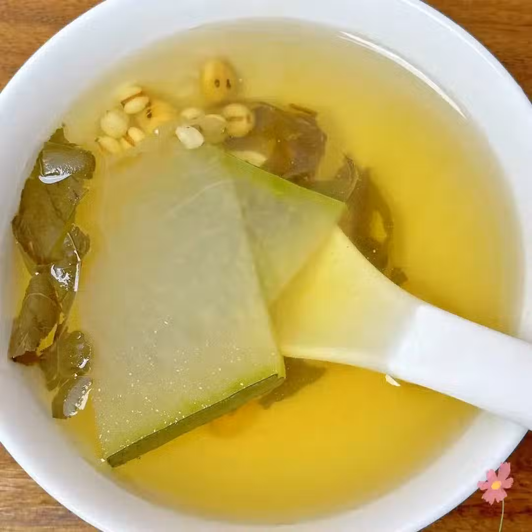 【食材】老冬瓜500g(帶皮)、干荷葉1張、炒薏米30g、炒扁豆20g