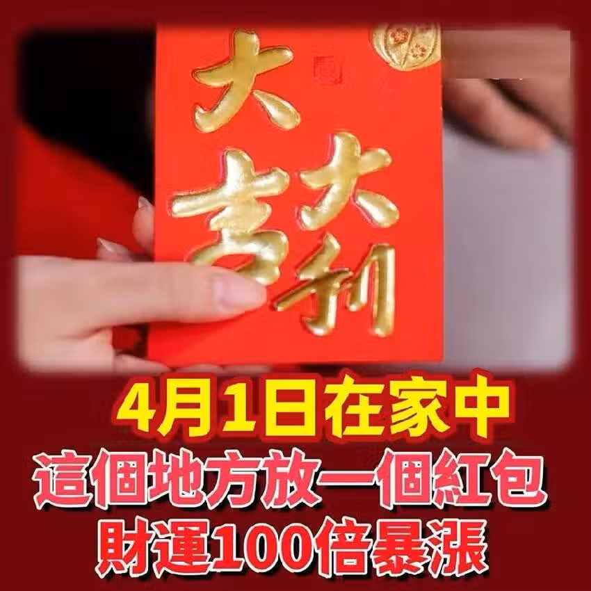 風水師偷偷透露:4月1日在家中這個地方,放一個紅包,竟能讓財運100倍暴漲,好運一路旺到年底