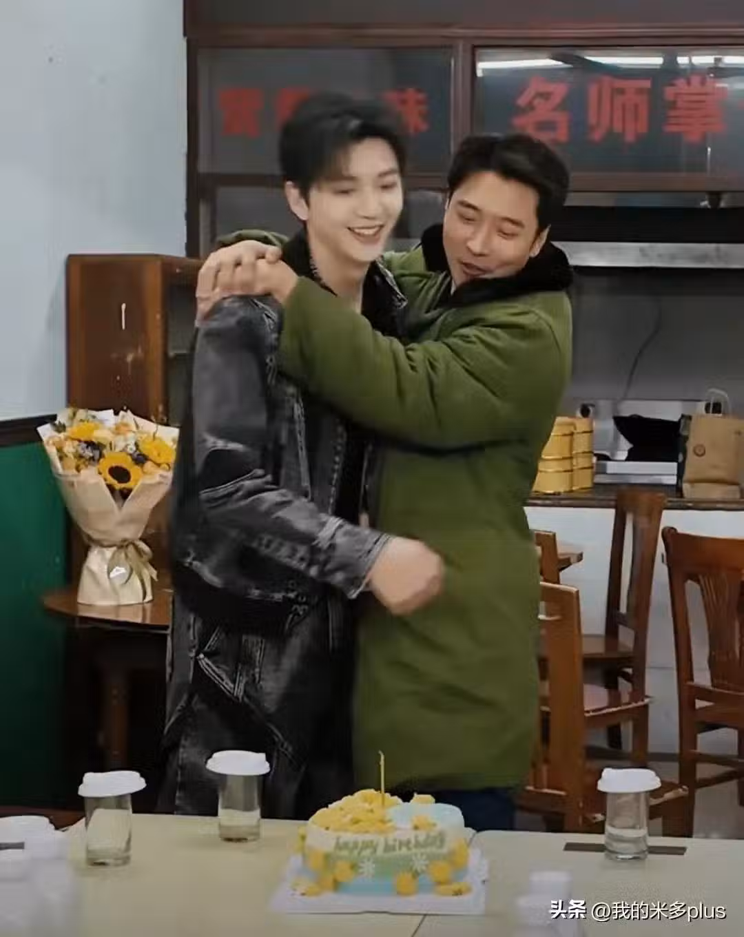 張丹峰許願之後特別高興一把摟住了大兒子,張鎬濂小時候還很依賴爸爸,經常讓爸爸抱著,如今個頭都比張丹峰高半頭了,張丹峰都要墊著腳抱著兒子,這畫面有點喜感,但張丹峰的喜悅是完全掩飾不住的,懂得感恩的好兒子,誰能不喜歡啊!