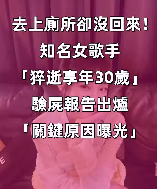 去上廁所卻沒回來!知名女歌手「猝逝享年30歲」 驗屍報告出爐「關鍵原因曝光...」