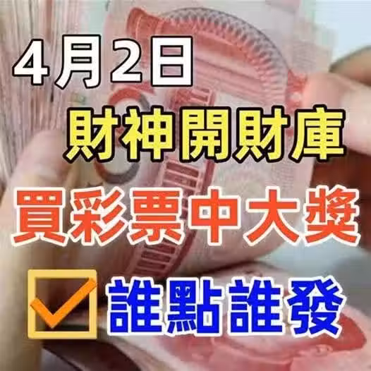 4月2日財神開財庫,誰點誰發,買彩票中大獎!