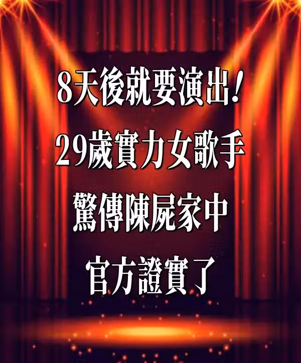 8天後就要演出!29歲實力女歌手驚傳陳屍家中 官方證實了!