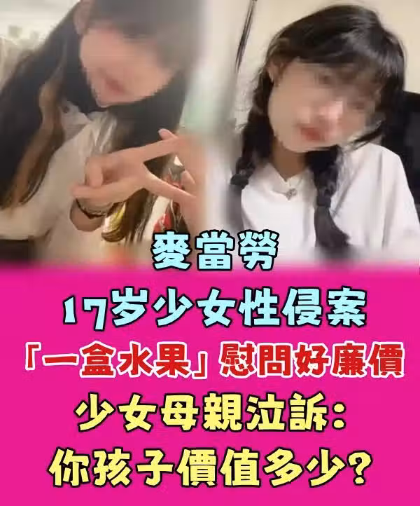 麥當勞17歲少女性.侵.案|「一盒水果」慰問好廉價 少女母親泣訴:你孩子價值多少