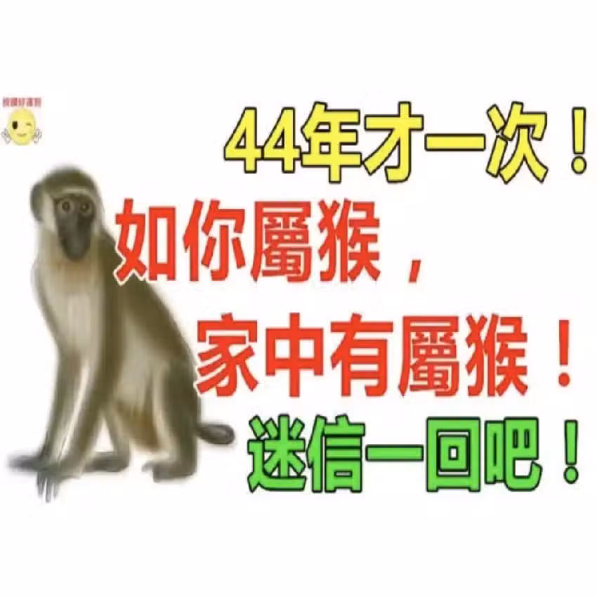 如果你不屬猴,你最愛的人屬猴,或家中有屬猴,44年才一次!迷信一回吧...