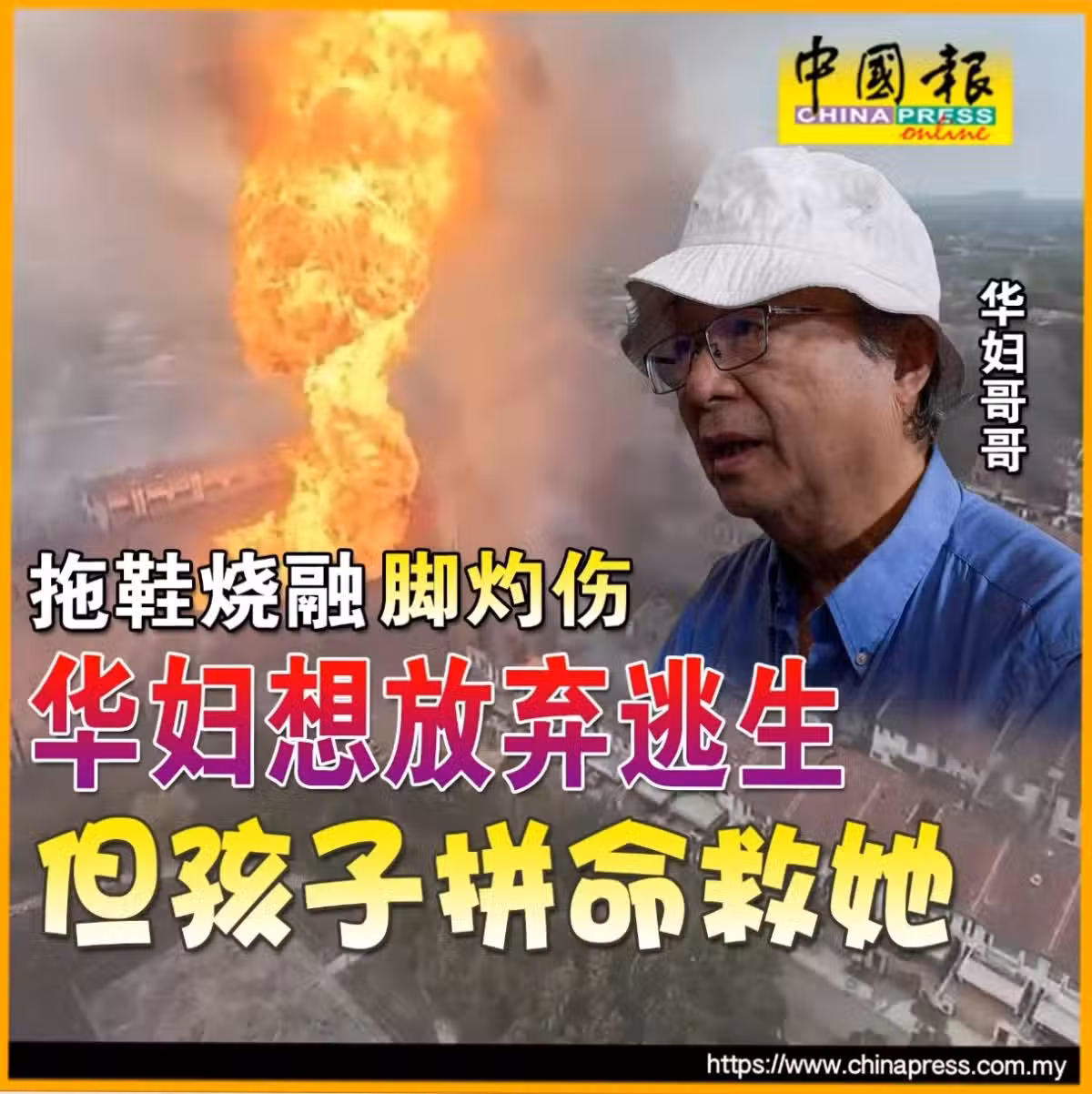 天然氣輸送管爆炸|拖鞋燒融腳灼傷 華婦想放棄逃生 但孩子拚命救她