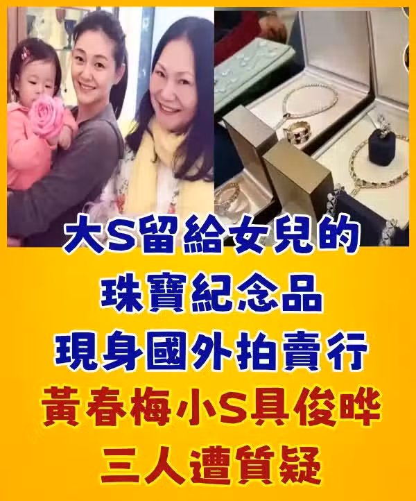 大S留給女兒的珠寶紀念品,現身國外拍賣行,黃春梅小S具俊曄三人遭質疑
