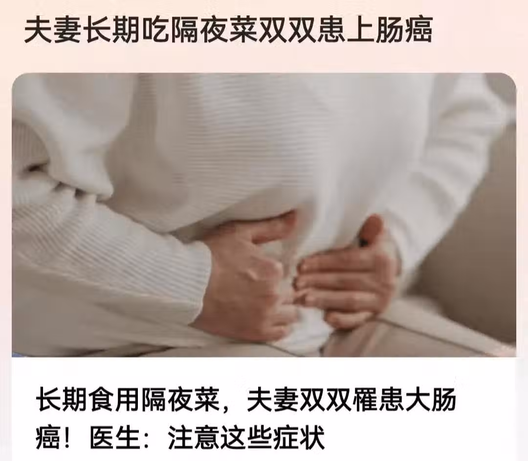 原來,隔夜菜中亞硝酸鹽含量很高的,當隔夜菜被人體吃了後,會進入腸道,與蛋白質的分解產物胺結合為亞硝胺,就容易生成一種致癌物。