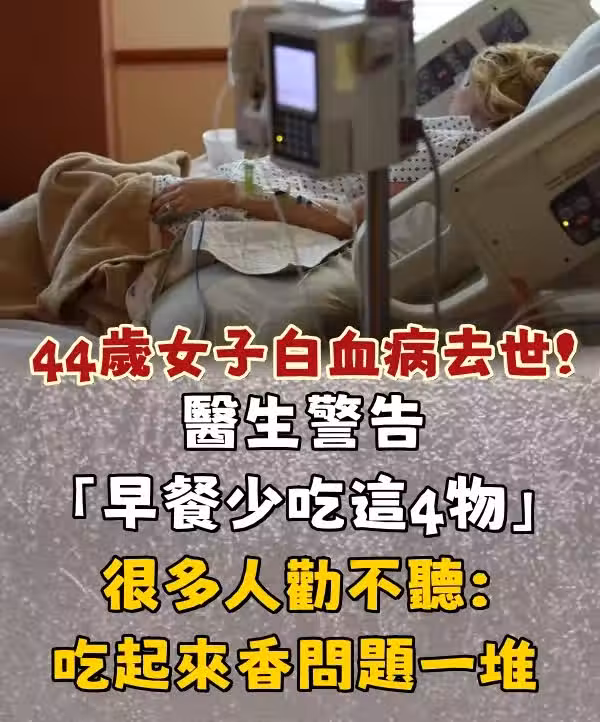 44歲女子白血病去世!醫生警告「早餐少吃這4物」很多人勸不聽: 吃起來香問題一堆
