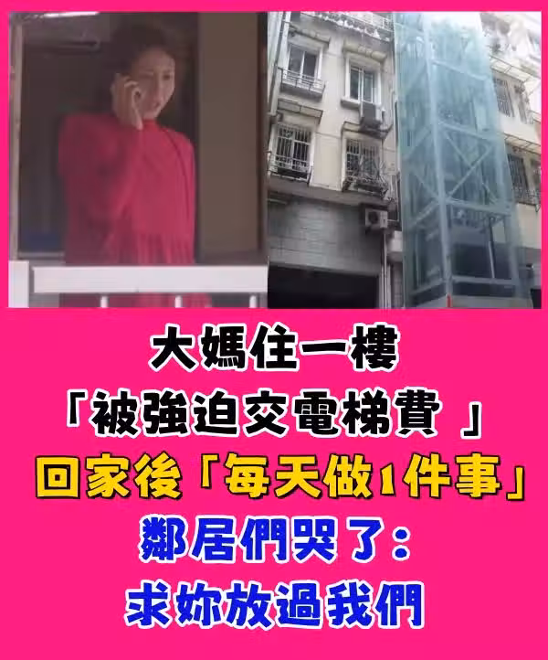 大媽住一樓「被強迫交電梯費 」 回家後「每天做1件事」鄰居們哭了:求你放過我們!