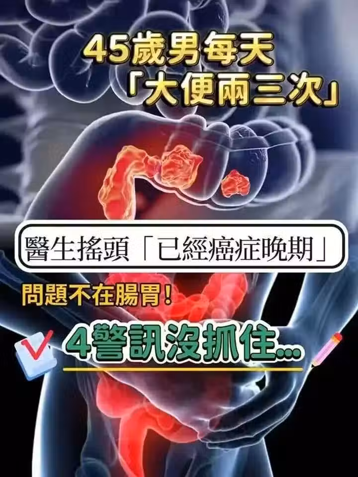 才45歲!他每天「大便兩三次」以為消化好,醫生搖頭「已經癌症晚期」,4異常沒注意!