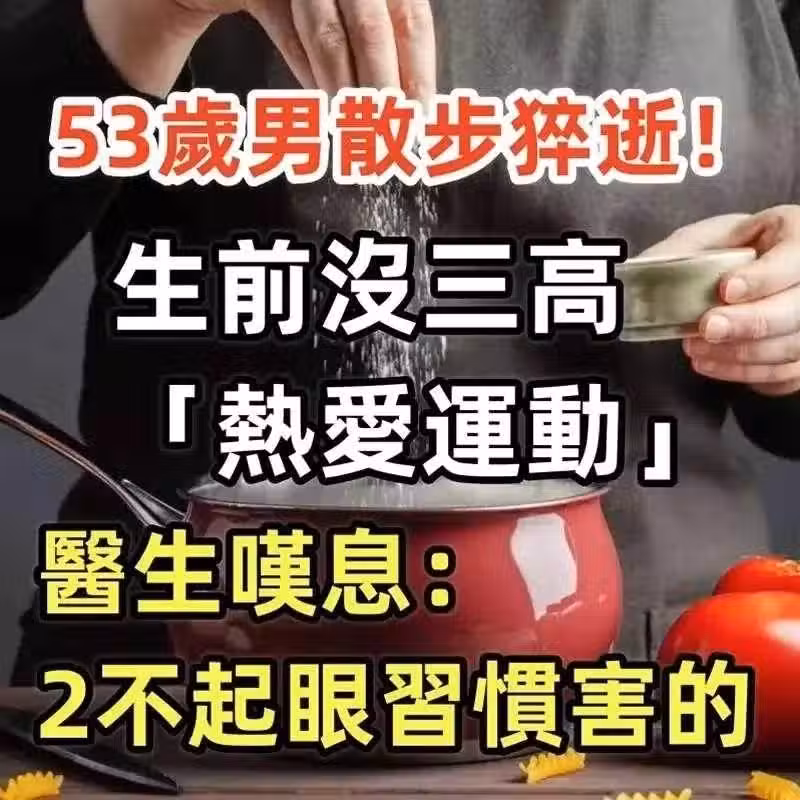 53歲男散步猝逝!生前沒三高「熱愛運動」醫生嘆息:2不起眼習慣害的!