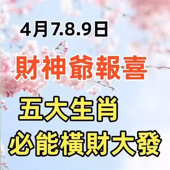 4月7.8.9日財神爺報喜,必能橫財大發的生肖!