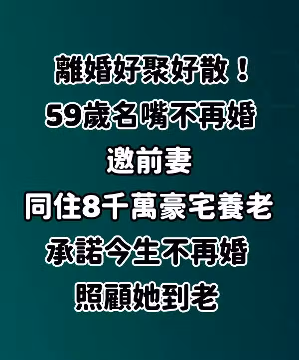 59歲名嘴不再婚「邀前妻同住8千萬豪宅養老」承諾今生不再婚,照顧她到老