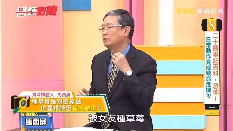 馬西屏繼續說,全世界第一例有醫學紀錄的,是在紐西蘭的醫療期刊,一個女生被男友種完草莓,「左手抬不起來」,到醫院檢查是輕微中風,打抗凝血劑才好轉;第一例死亡則在2016年,墨西哥17歲男子,被女友種了滿脖子的草莓,當晚快活後睡覺一半癲癇,送醫院時為時已晚。