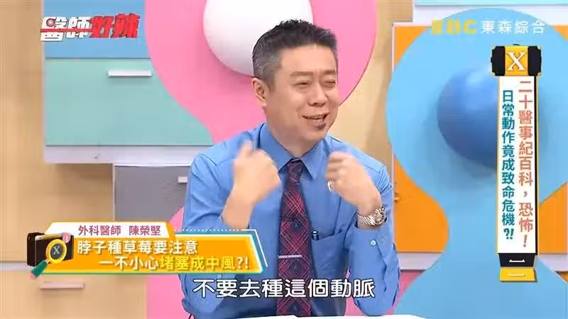做頸動脈超音波,發現有比較增厚的斑塊在那邊,有時候你在吸的過程中,可能就把斑塊弄起來,變成小小的阻塞物,血栓往上跑,就會造成這樣的情形」,因此他提醒,要種草莓可以,但要避免動脈。
