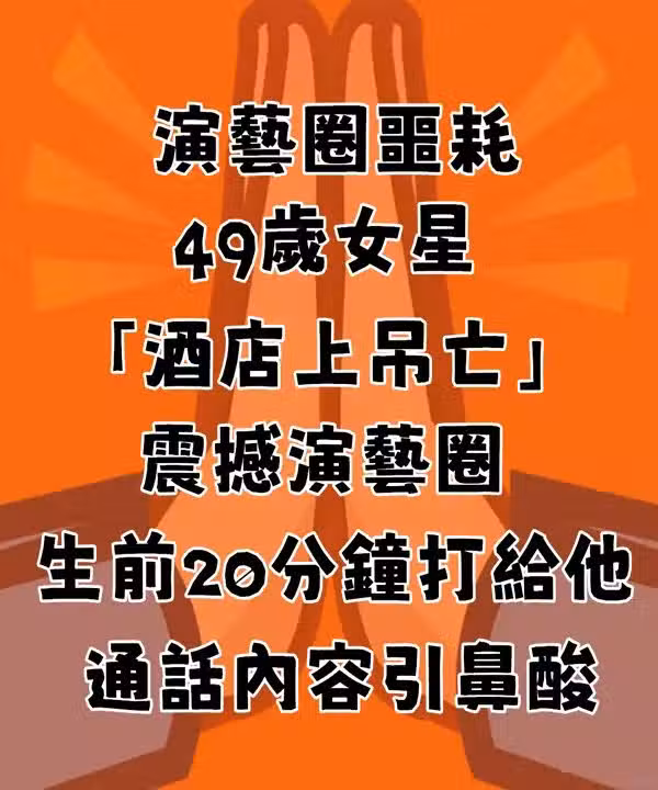 演藝圈噩耗!49歲女星在「酒店上吊亡」震撼演藝圈 「生前20分鐘打給他」通話內容引鼻酸
