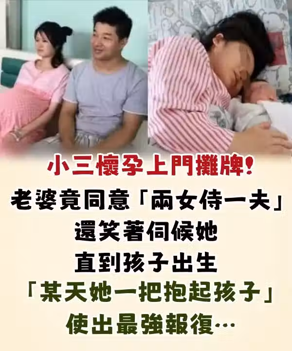小三懷孕上門攤牌! 老婆竟同意「兩女侍一夫」 還笑著伺候她直到孩子出生「某天她一把抱起孩子」使出最強報復…