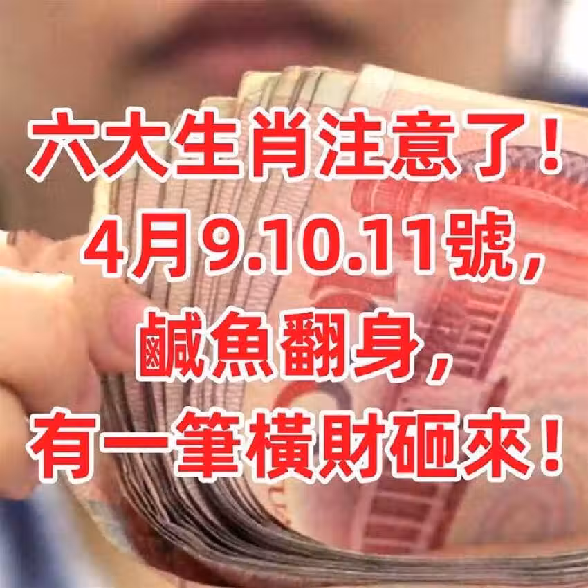 4月9.10.11號,鹹魚翻身,有一筆橫財砸來的生肖!