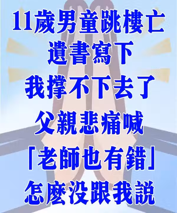 11歲男童跳樓亡!遺書寫下「無藥可救的孩子」:我撐不下去了 父親悲痛喊「老師也有錯」:怎麼沒跟我說