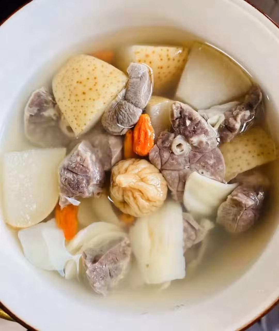 春燥易傷肺,這道湯水是長輩傳下來的潤燥方。雪梨生津潤肺,無花果健脾通腸,豬肺「以形補形」緩解喉嚨干癢。常喝可改善換季乾咳、皮膚乾燥,適合吸煙或慢性咽炎人群。