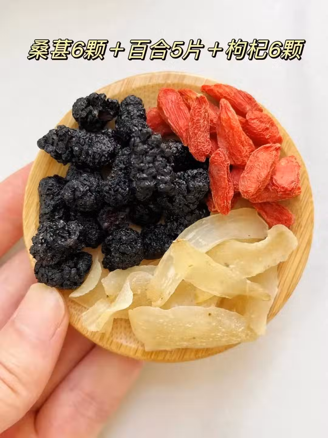 👩🍳做法: 1️⃣把桑葚和百合洗乾淨,百合可以提前浸泡30分鐘 2️⃣所有食材放進養生壺煮10分鐘或者放杯子裡泡水多燜一下。
