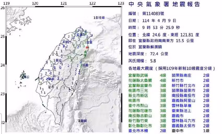 此外,氣象署地震測報中心主任吳健富也補充,昨日地震為獨立事件,深度72.4公里屬於中深層,未來比較不會發生餘震。