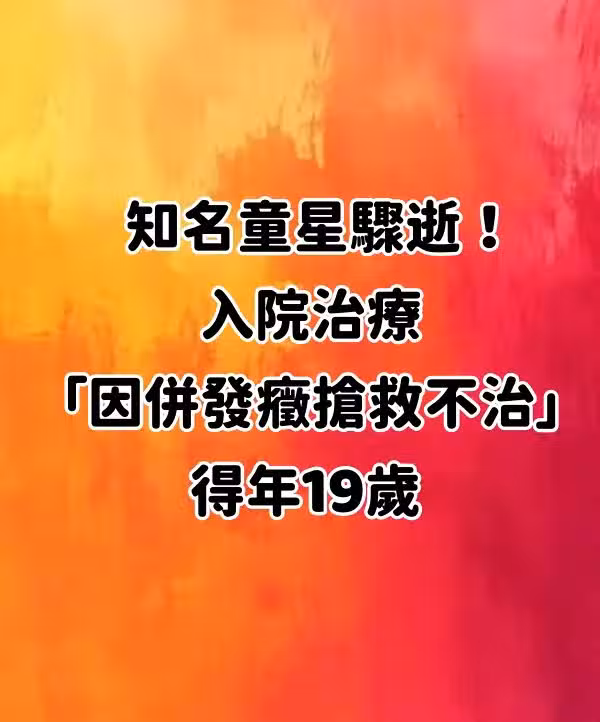 知名童星驟逝!入院治療「因併發症搶救不治」得年18歲 媽媽「悲慟證實噩耗」心碎喊話:以女兒為傲