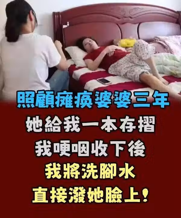 照顧癱瘓婆婆三年 她給我一本存摺我哽咽收下後 我將洗腳水直接潑她臉上