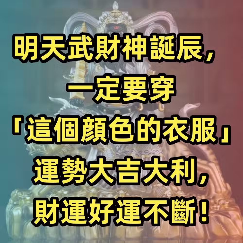 明天武財神誕辰,一定要穿「這個顏色的衣服」運勢大吉大利, 財運好運不斷!