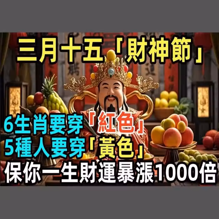 三月十五「財神節」,6生肖要穿「紅色」,5種人要穿「黃色」,保你一生財運暴漲1000倍