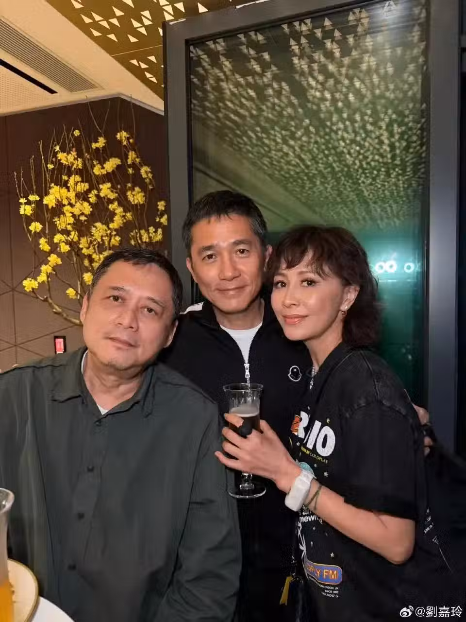 照片中,劉嘉玲穿著黑色主題t恤,梁朝偉穿著黑色外套,兩人都穿著黑色上衣,同色系穿搭組情侶造型。跟劉嘉玲夫妻倆一起去看演唱會的還有好友張叔平,三人關係真好。