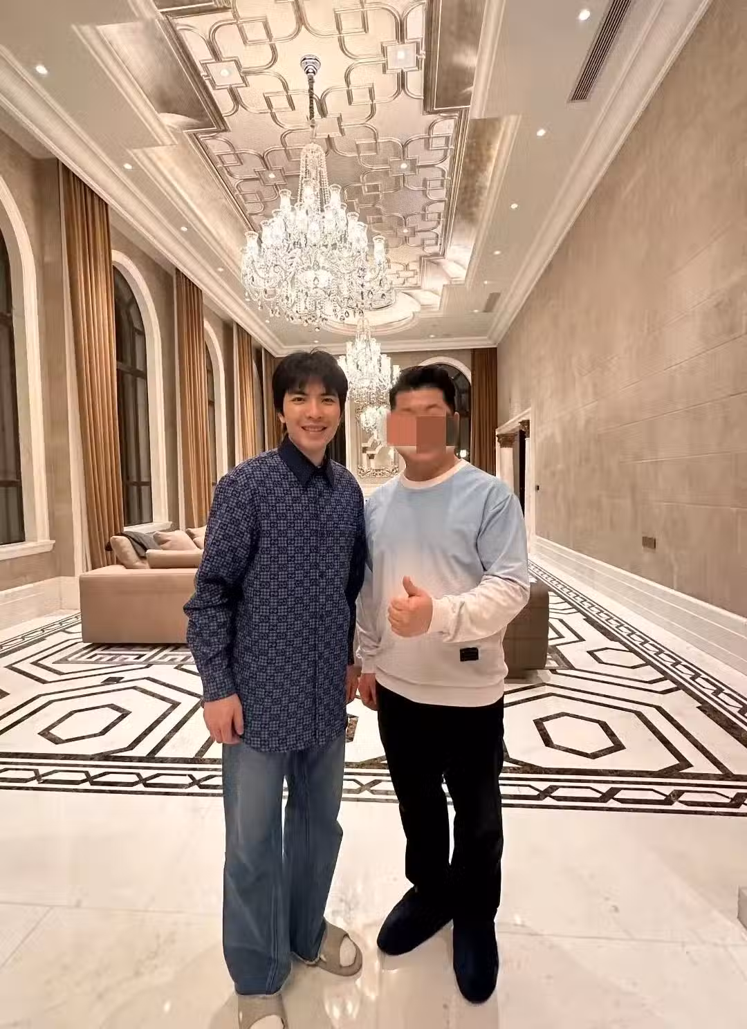 蕭敬騰去的這家餐廳裝修十分豪華大氣,估計原本是想和老婆林有慧有個美妙的二人晚餐,結果被認出來後一直在合影,不過蕭敬騰的脾氣相當好,合影要求都一一滿足。