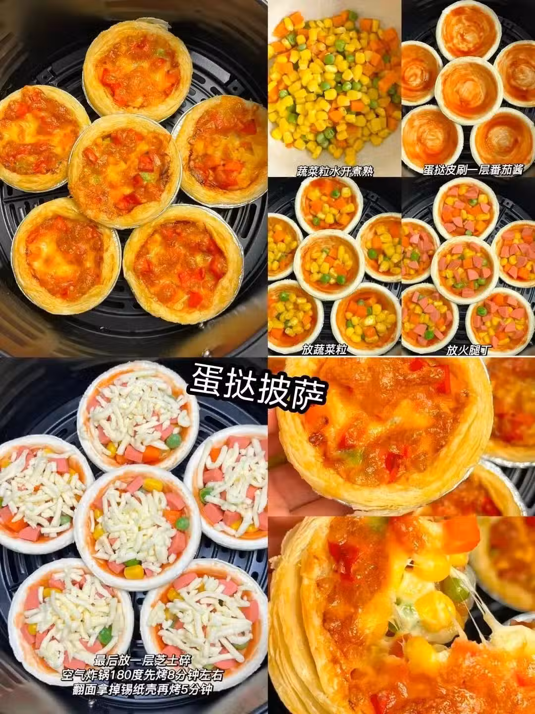 蛋撻披薩:澳門賭場同款,葡式蛋撻和披薩的私生子! 脆皮托著顫巍巍的蛋奶液,撒一把火腿丁送進烤箱。出爐時隔壁小孩饞哭名場面+1,建議配凍檸茶食用防燙嘴。
