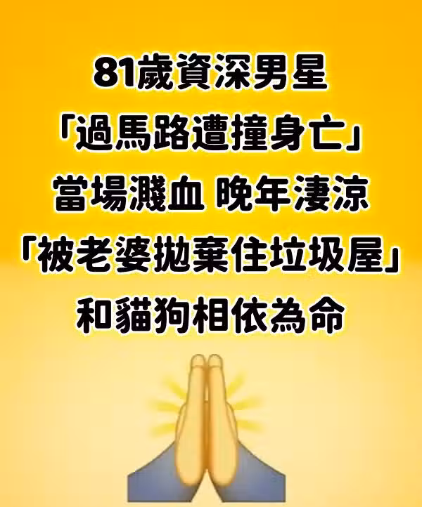 81歲資深男星「過馬路遭撞身亡」當場濺血 晚年淒涼「被老婆拋棄、住垃圾屋」和貓狗相依為命